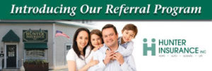By referring your friends and family to Hunter Insurance you will be helping them secure quality insurance coverage, affordable rates and the high-level of customer service you have come to expect.